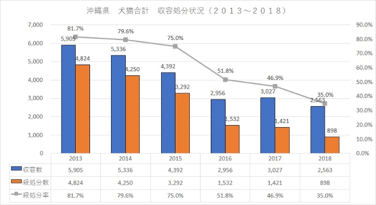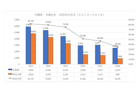 沖縄県では毎年多くの犬猫が殺処分されています。