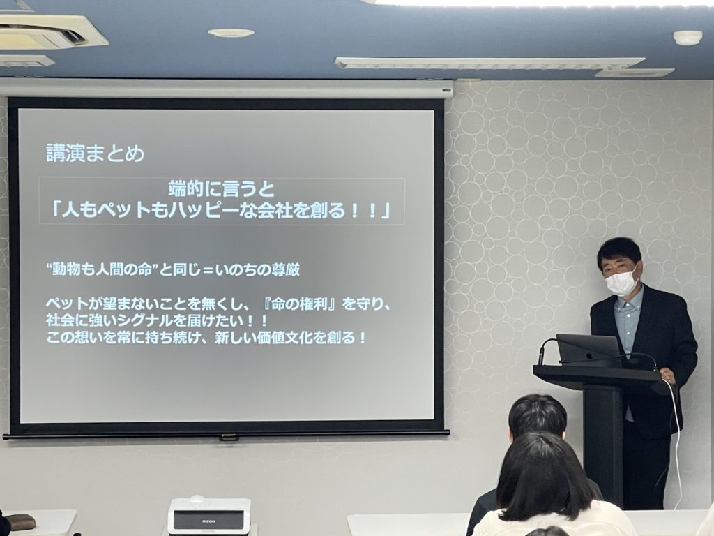 昨日、オキナワビアンコにて「専門学校 ちば愛犬動物フラワー学園」の生徒さん達に向けて、中村社長の講演会を行いました!